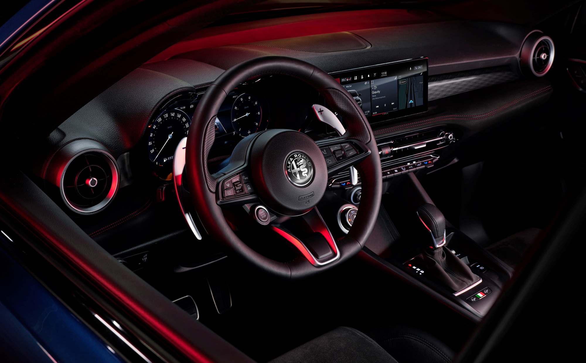 El habitáculo pone al conductor como indiscutible protagonista del espacio. Todos los controles se sitúan a su alcance con facilidad, además de inspirarse en la larga historia de Alfa en el mundo de la competición. Materiales de calidad, combinación de tejidos como el cuero y el Alcantara con elementos de aluminio, un volante de dimensiones compacto, levas de cambio, salpicadero con retroiluminación… cada detalle se ha cuidado con esmero en el Tonale para que sea digno heredero de la historia de una marca centenaria.