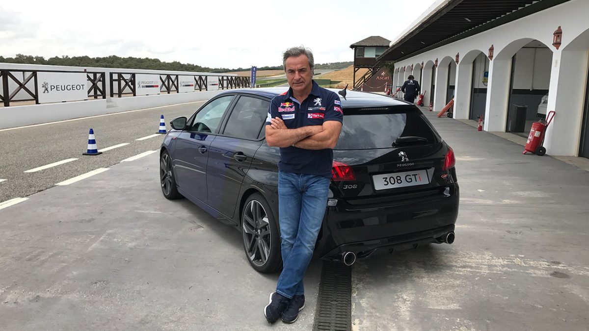 En su día a día, lejos de la competición, Carlos Sainz conduce un Peugeot 308 GTI, cuya nueva versión acaba de llegar al mercado español. Un modelo que incorpora nueva estética, menos peso y los últimos adelantos tecnológicos de Peugeot en ayudas a la conducción. Un coche de calle que, sin embargo, rinde perfectamente en un circuito.