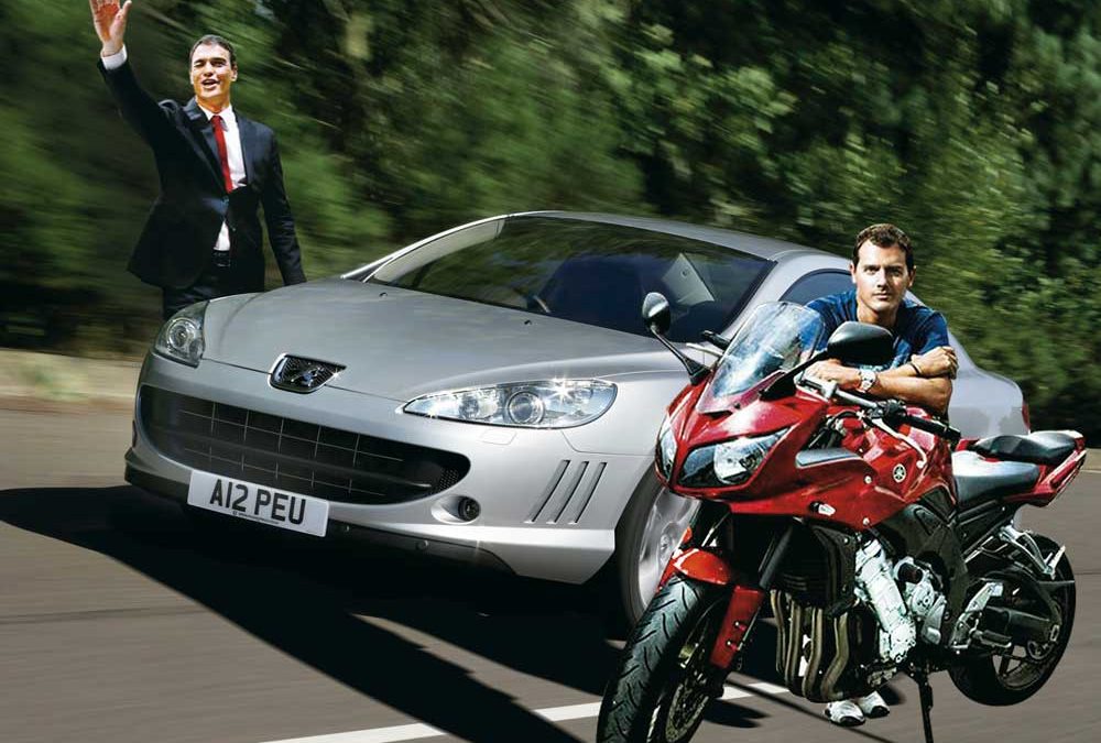 Empezando por el presidente en funciones, Mariano Rajoy, no sorprende que no tenga a su nombre ninguno, puesto que cuenta con coche oficial a tiempo completo. Pedro Sánchez conduce un Peugeot 407 del año 2005, Albert Rivera prefiere moverse en moto y posee una Yamaha FZ1 de 2009, aunque también es dueño de un Volkswagen Golf de 2012. Por último, Pablo Iglesias también tiene una moto.