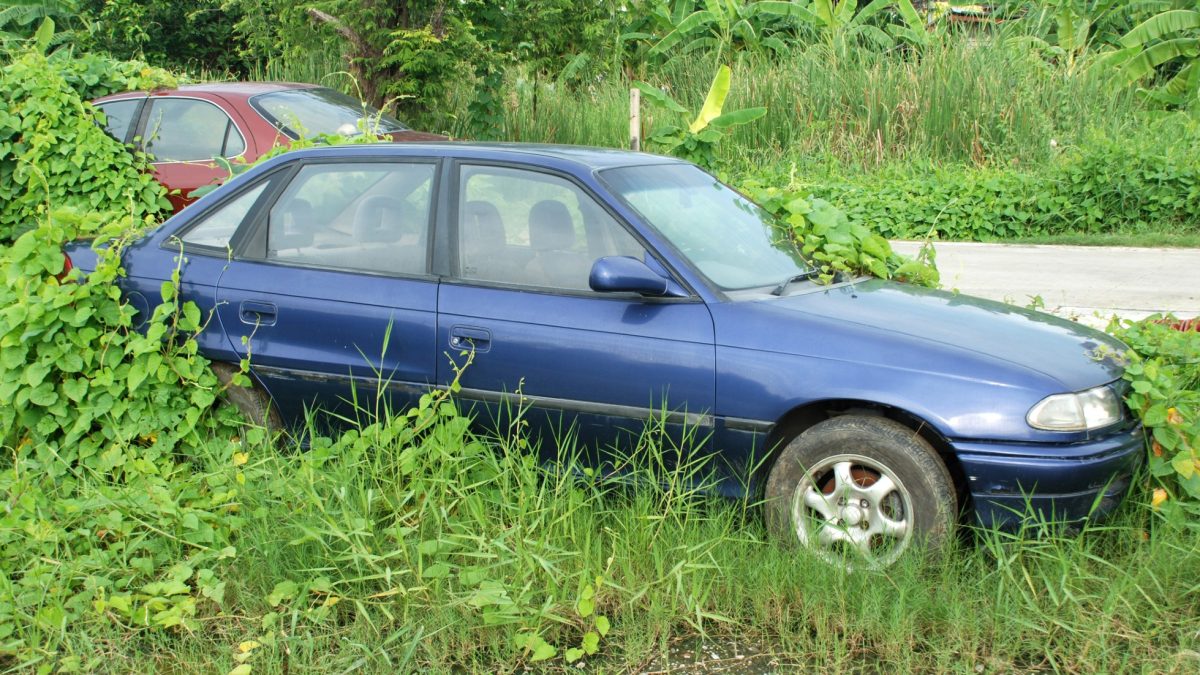 Un coche abandonado en la calle.