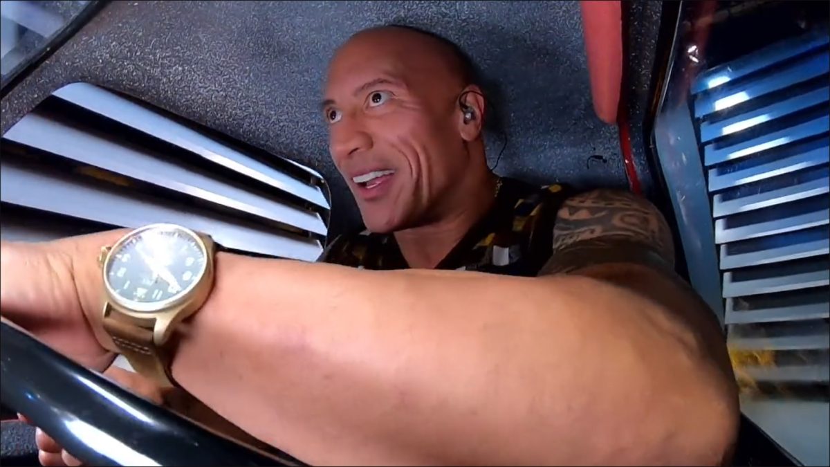 La agenda de actos promocionales de ‘La Roca’ incluía una visita al programa El Hormiguero, donde Pablo Motos le hizo subir al coche más pequeño del mundo.