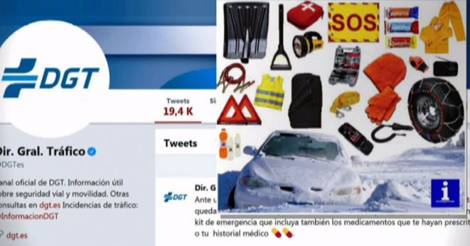 Desde la DGT recomendaban estar convenientemente pertrechados para afrontar cualquier incidente en una situación invernal grave. Hasta aquí todo correcto de no ser por lo desproporcionado de la dotación propuesta, nada menos que casi una veintena de objetos capaces de convertir en minúsculo el maletero de coche más generoso. La lista incluye pequeñeces como un silbato, un cargador de teléfono móvil o unas barritas energéticas, pero también una pala, un traje de agua, eslingas para remolcar, un botiquín, un gorro de lana y unos guantes, una linterna, una caja de herramientas, un aparato de radio, unos cables de batería, las cadenas… Todo ello sin olvidar otros elementos obligatorios permanentemente como el chaleco reflectante y los triángulos de señalización.