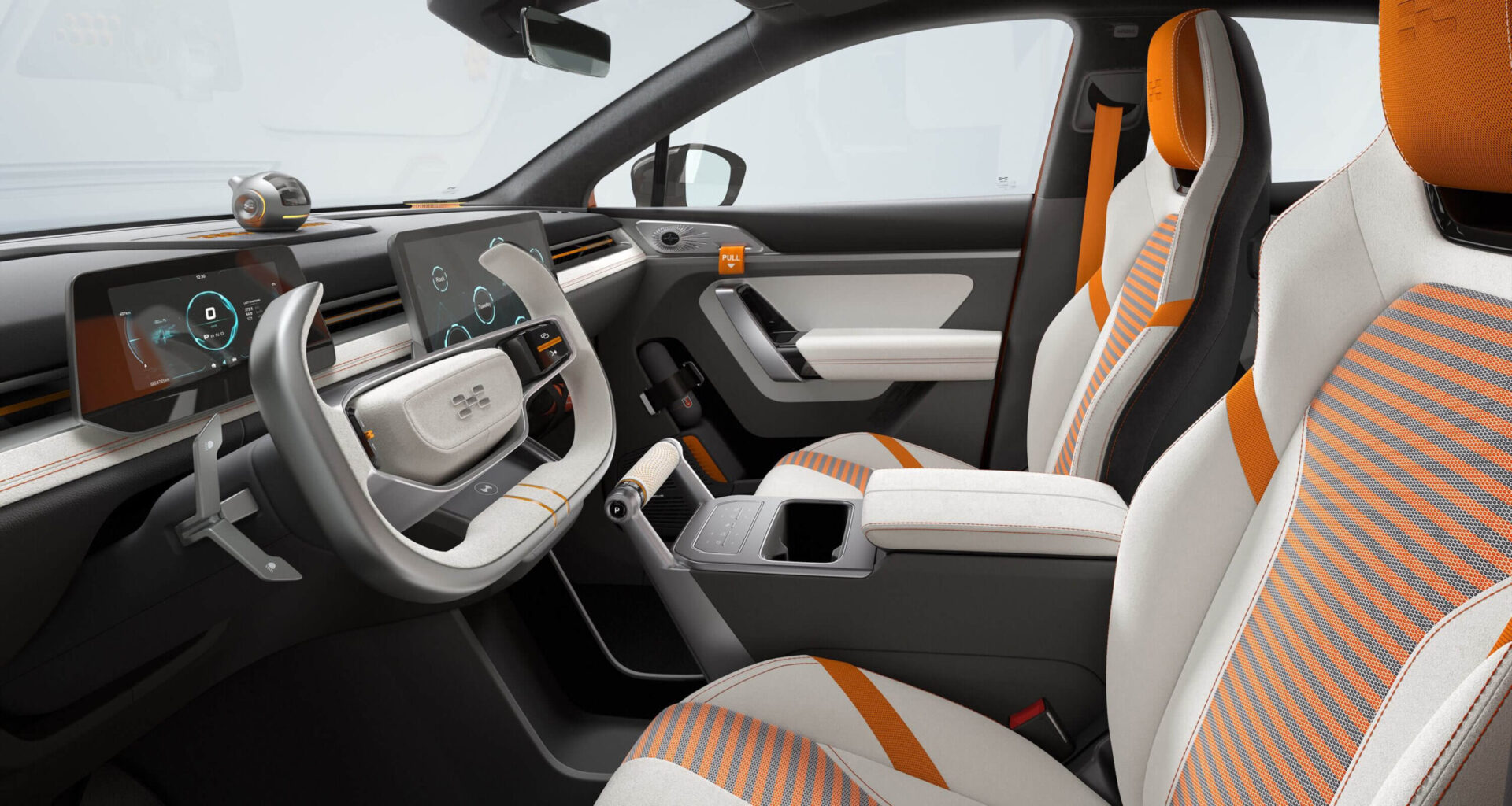 El interior consigue también sorprender, y presenta un conjunto de aires futuristas, con cuadro y pantalla digitales, cuatro butacas individuales y detalles llamativos como el volante abierto de estilo F1 y el cambio con forma de palanca de avión.