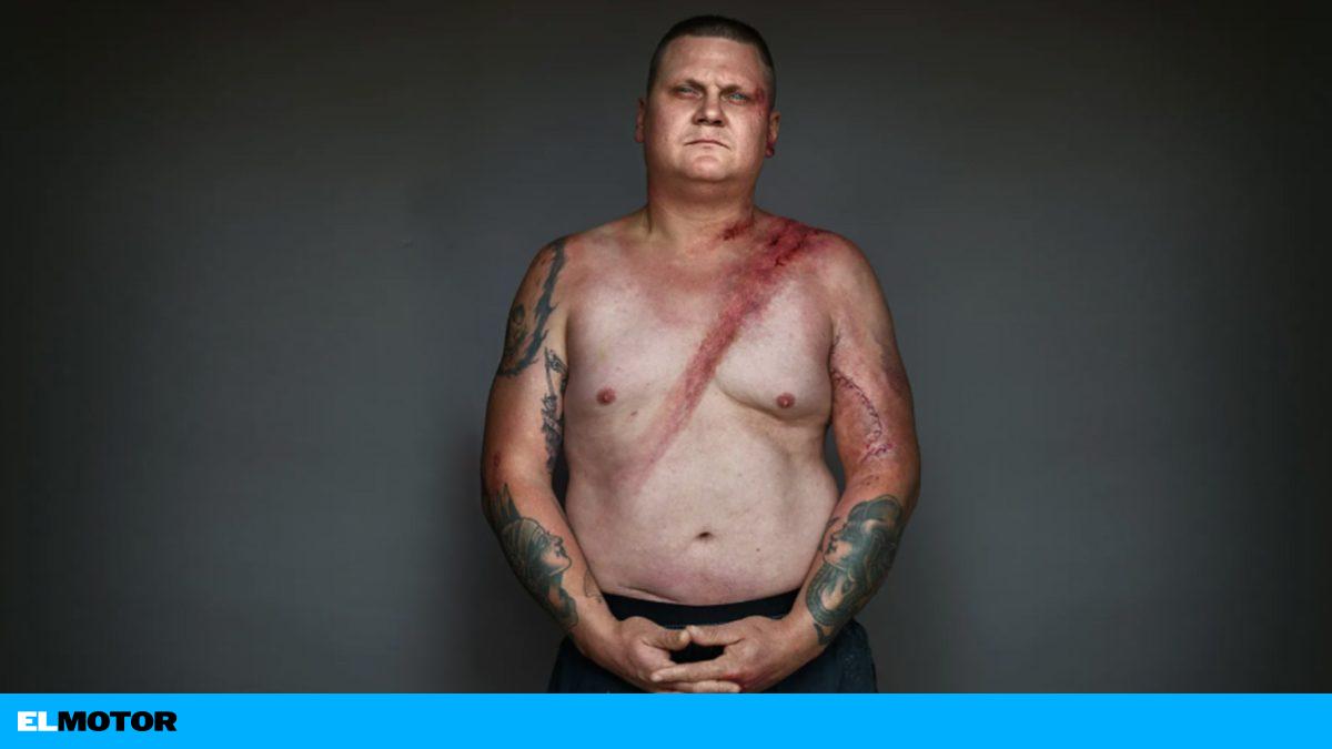 Acababa de cumplir 21 años y fue golpeado por un conductor ebrio. Se rompió la mandíbula, una costilla y sufrió daños cerebrales en sus lóbulos frontal y temporal. Los médicos realizaron una traqueotomía de emergencia en el lugar del accidente. Su cinturón de seguridad le salvó la vida. -