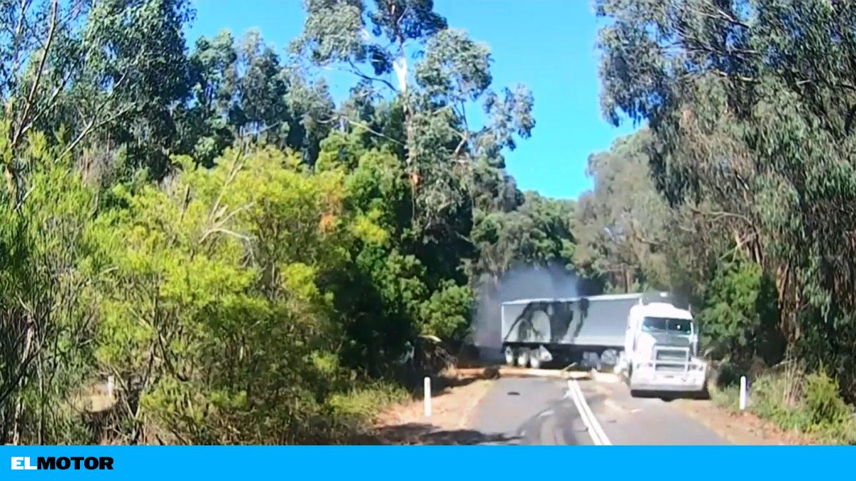 Un camión evita en el último instante arrollar a dos automóviles detenidos en una carretera de Australia.
