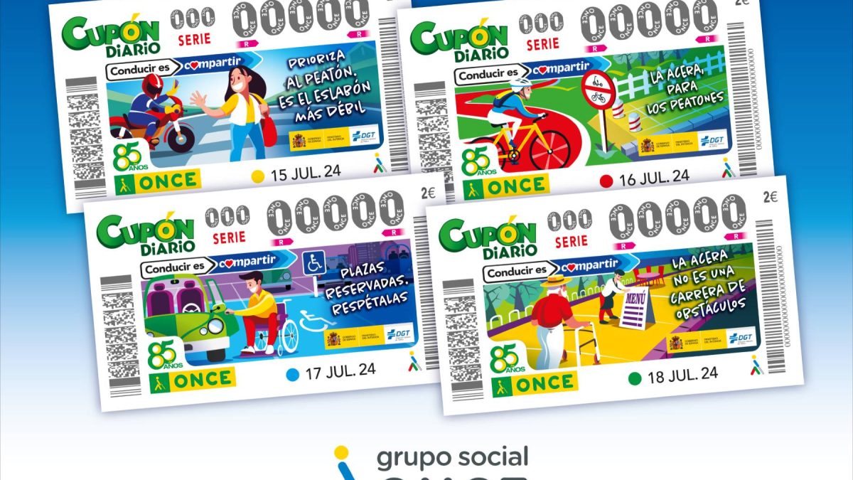 La defensa del peatón y el respeto a las plazas de estacionamiento para personas con discapacidad son los motivos centrales de los cupones de la ONCE desde este lunes y hasta el jueves que recogen la campaña Conducir es compartir, de la Dirección General de Tráfico (DGT).