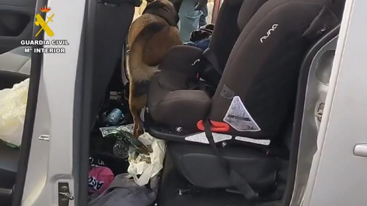 Fue Pompa, una perra de raza pastor belga malinois que participaba en el dispositivo operativo, quien marcó a su guía la zona del asiento trasero del vehículo, con gestos inequívocos de que pudiera haber dinero escondido, informa Europa Press.
