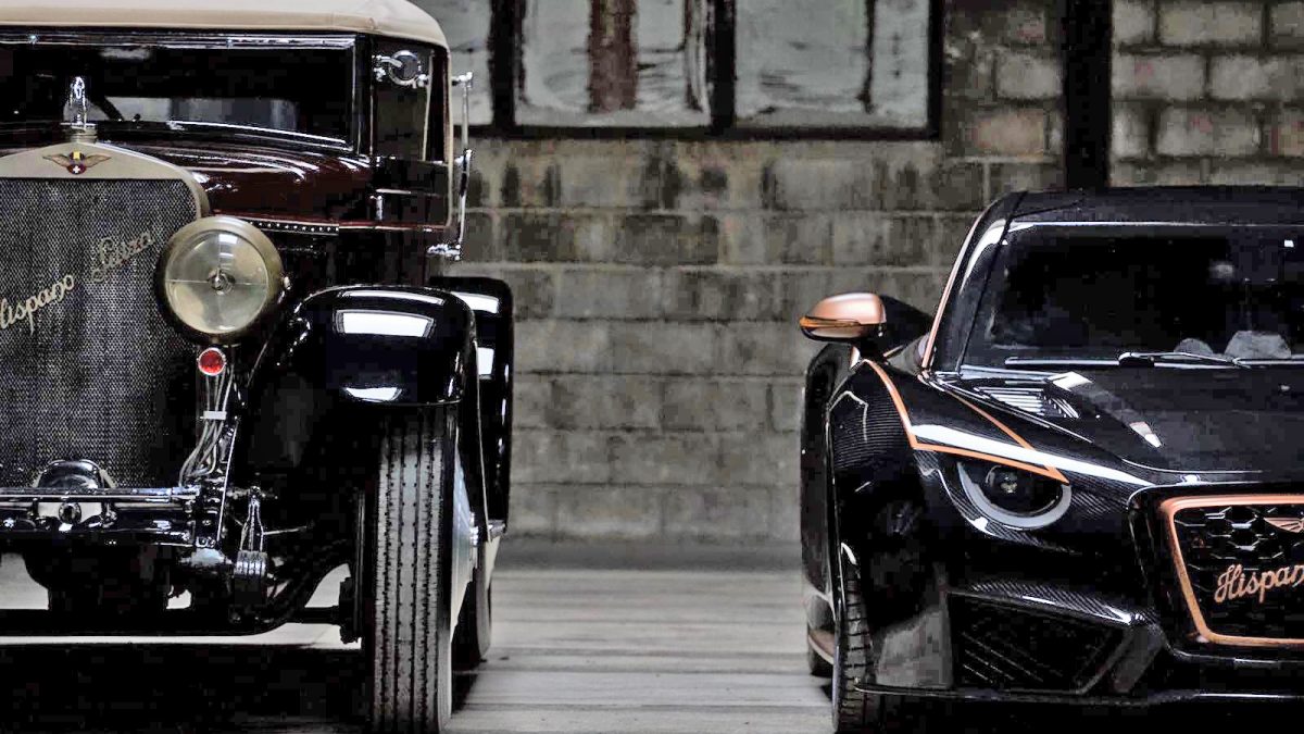 Entre 1904 y 1946, Hispano Suiza fabricó más de 12.000 automóviles. La cigüeña alada, su emblema, se empleó en honor a una escuadra de aviación que utilizaba motores del fabricante durante la primera Guerra Mundial. En la imagen, los modelos H6, de 1919, y el actual Carmen Boulogne. -