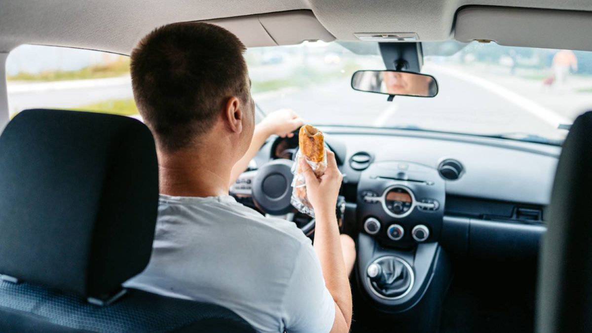 Otras distracciones se castigan con hasta 100 euros porque suponen una infracción leve de la ley de tráfico por incumplir la obligación de “estar en todo momento en condiciones de controlar su vehículo”. Por ejemplo, con un bocadillo o un pintalabios en la mano.
