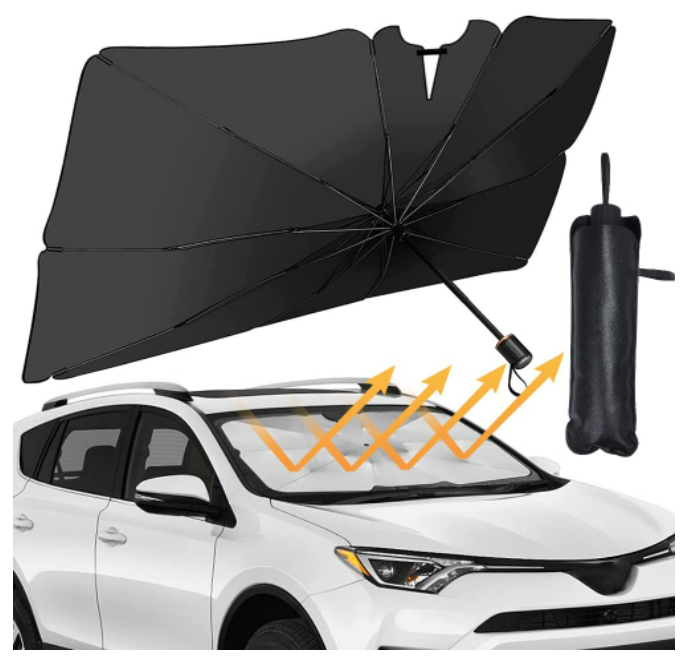 Similar a las sombrillas para el verano, pero para plegarlo dentro del coche. Funciona igual que un paraguas y no es necesario instalarlo antes de usarlo, pues solo hay que abrirlo y extenderlo en el parabrisas. Está compuesto de diez esqueletos de acero de alta dureza. Hay tres tamaños disponibles (S, M y L).