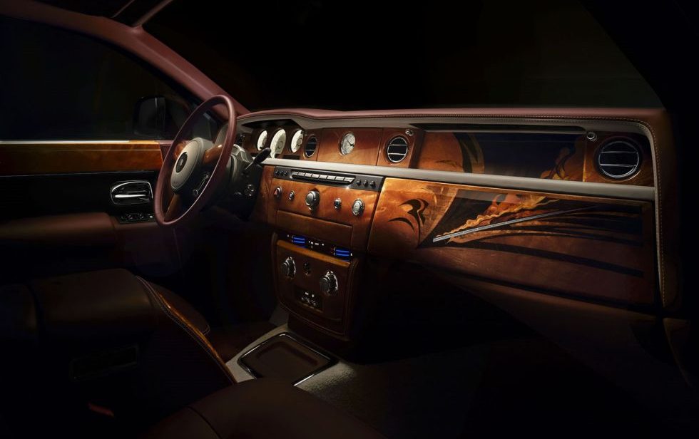 El habitáculo es sinónimo de lujo y detalle. Ejemplo de ello son las 230 piezas de madera tallada que monta cada unidad y que dan forma a salpicadero, consola central y paneles de las puertas. También destaca la tapicería de piel granate que, según Rolls-Royce, está cosida con 24.633 puntadas.