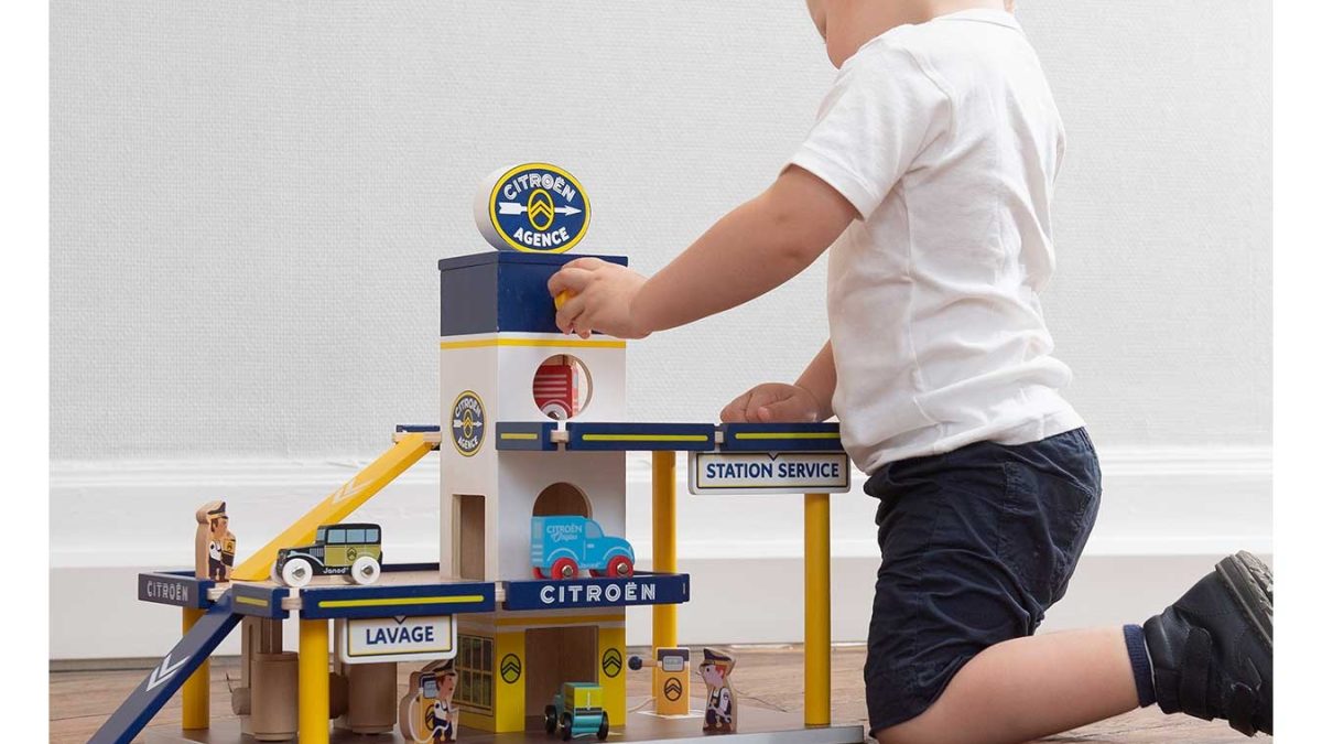 Los fabricantes también tienen regalos para los más pequeños de la casa. Son habituales los coches en miniatura, pero este caso el garaje de Citroën es de corte clásico, tanto por estar hecho de madera como por lucir los colores que la marca tenía en otra época.