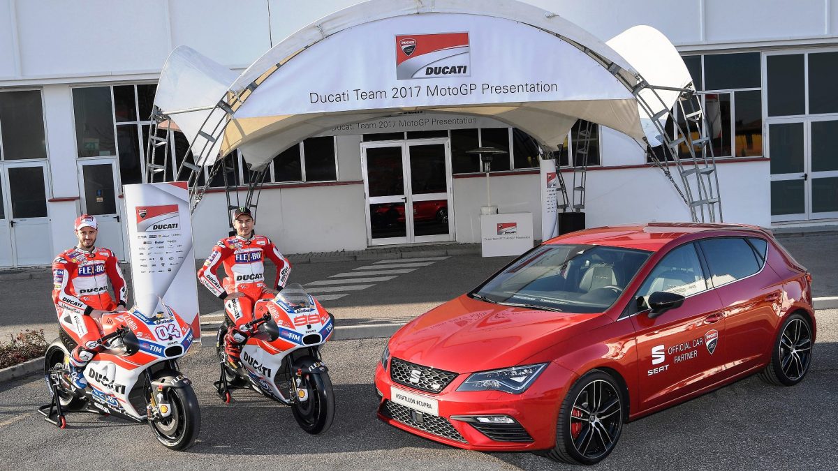SEAT quiere aprovechar la enorme difusión del Campeonato del Mundo de MotoGP y por ello ha alcanzado un acuerdo de un año de duración con la escudería Ducati, a la que este año se incorpora el pentacampeón español Jorge Lorenzo (con tres de su títulos en la categoría reina) procedente de Yamaha y como nuevo compañero del italiano Andrea Dovizoso.