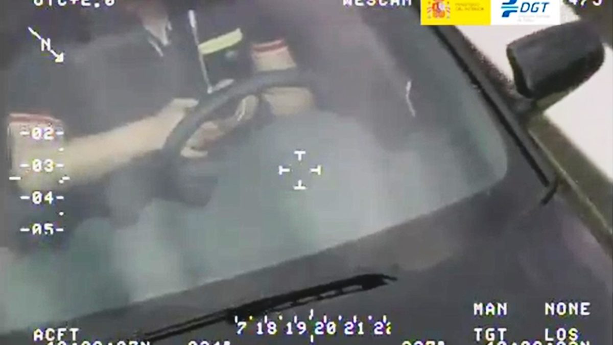 El helicóptero de Tráfico graba a un conductor escribiendo un mensaje con su móvil durante medio minuto.