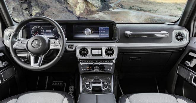 Entre el equipamiento de serie destacan también los asientos calefactados y el sistema de audio con siete altavoces, aunque seguramente muchos de los clientes que compren un nuevo Mercedes Clase G los desechen y opten por extras como el paquete Active Multicontour Seat, que incluye asientos calefactados, ventilados y con función de masaje; o el sistema de sonido Burmester de 16 altavoces.