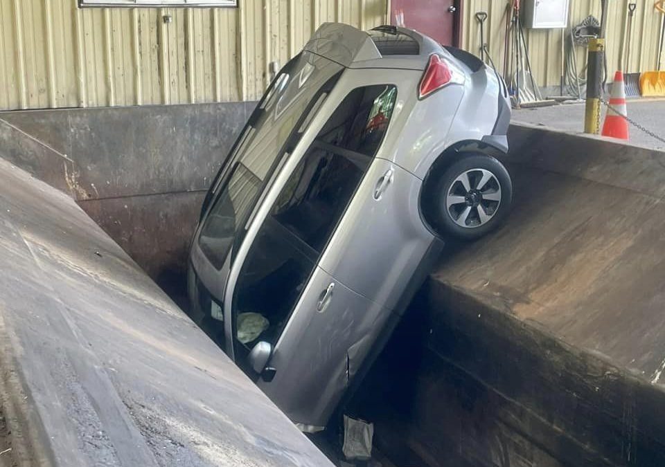 El pasado jueves, una conductora tuvo suerte de no haber sufrido un accidente mayor de lo que realmente ocurrió. Al volante de un Subaru Forester, la mujer se adentró en el hueco de la prensa compactadora, que en ese momento no estaba activa, situada en una especie de punto limpio.