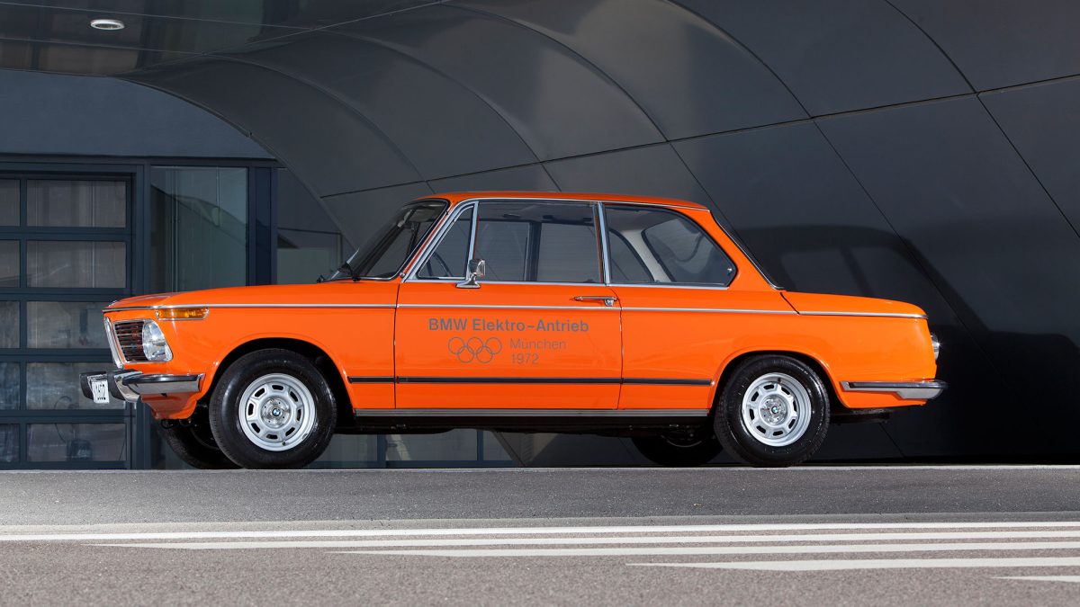 El primer automóvil eléctrico de BMW fue presentado aprovechando la repercusión de los Juegos Olímpicos de Múnich. Contaba una docena de baterías de plomo-ácido estándar de 12 voltios y su motor eléctrico rendía 32 kW (43 CV) de potencia. Se denominó Elektro-antrieb, o lo que es lo mismo, accionamiento eléctrico. -