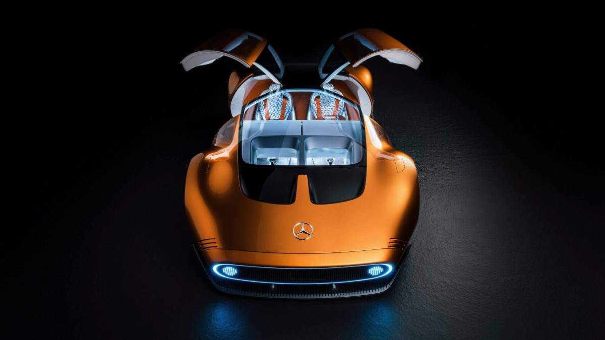 El Vision One-Eleven es el encargado de recoger el relevo de los Mercedes C111 para mostrar hacia dónde se dirigirá la marca en los próximos años. Teñido de naranja con un toque de cobre para homenajear al modelo en el que se ha inspirado, su carrocería es todo un ejercicio de aerodinámica: no en vano, mide 1,17 metros de alto.