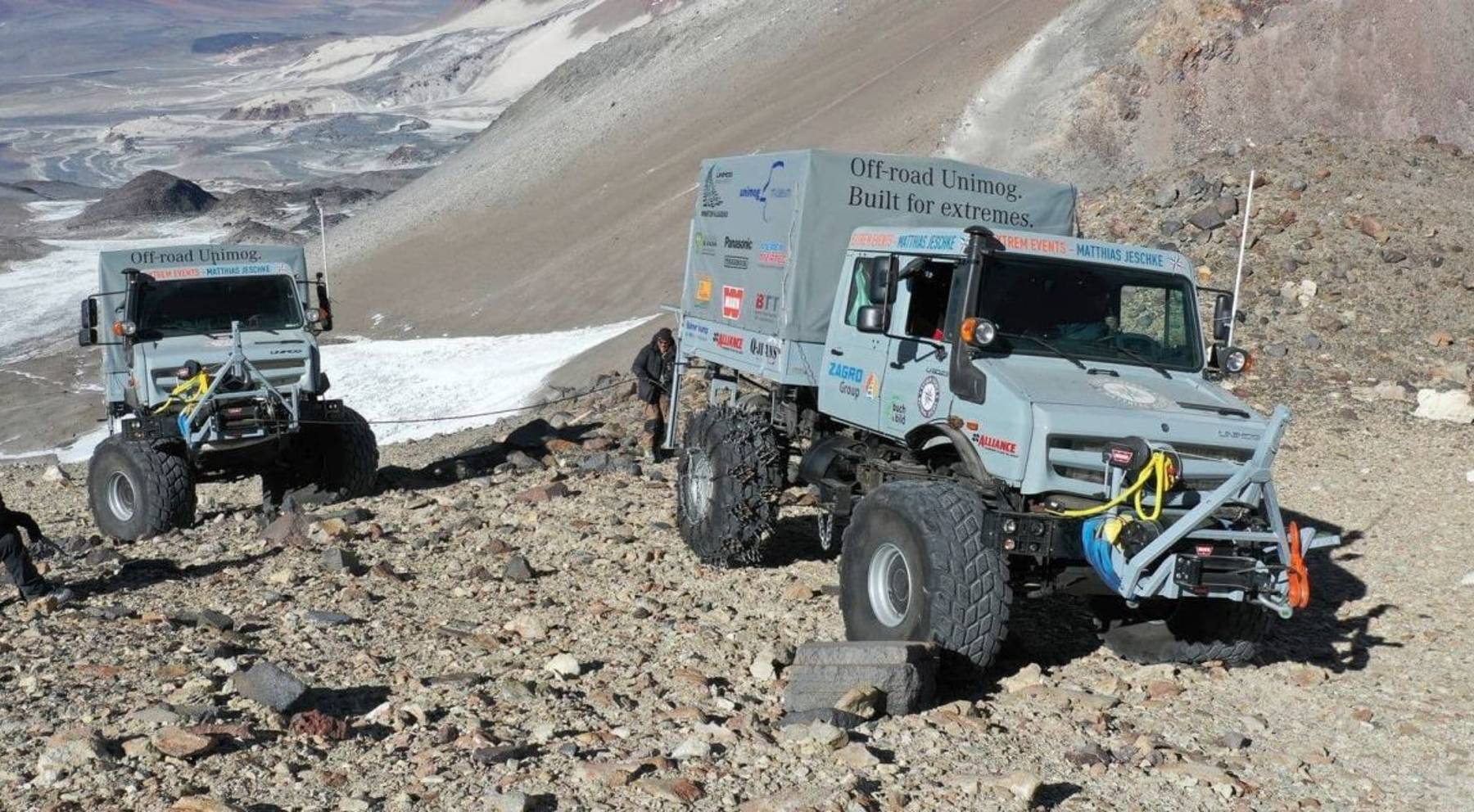 En la actualidad, la plusmarca la ostentan sendos Mercedes Unimog, que consiguieron alzarse hasta los 6.694 metros en el volcán Ojos del Salado. La división Mercedes-Benz Special Trucks preparó dos unidades de 231 CV y 900 Nm de par motor (a 1.400 rpm) para la instalación de antenas de radio de emergencias.