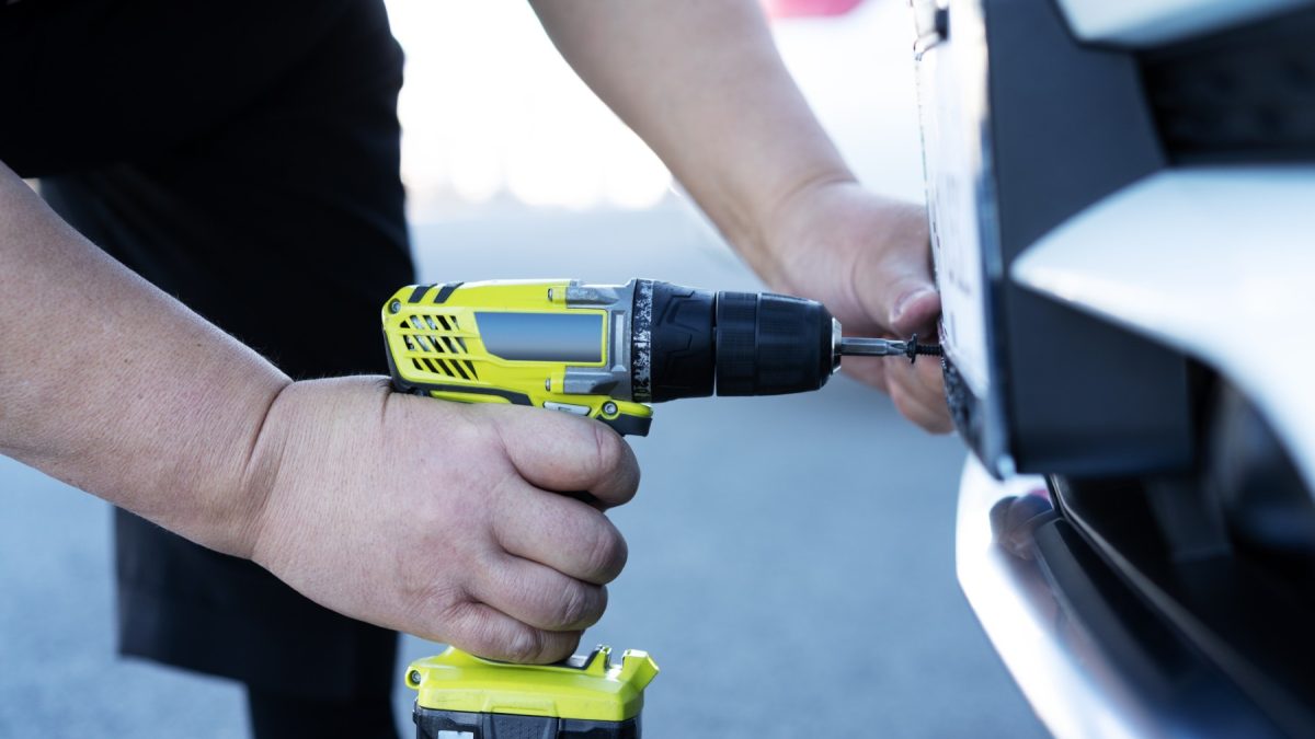Después, la matrícula se apoya de nuevo en el soporte y se pasa a sujetarla de nuevo. Se puede elegir entre volver a atornillarla, aprovechando los agujeros ya hechos. Si se coloca una matrícula nueva y se elige sujetarla con tornillos, hay que tener cuidado de no romperla. Las placas de plástico, por ejemplo, son más sensibles.