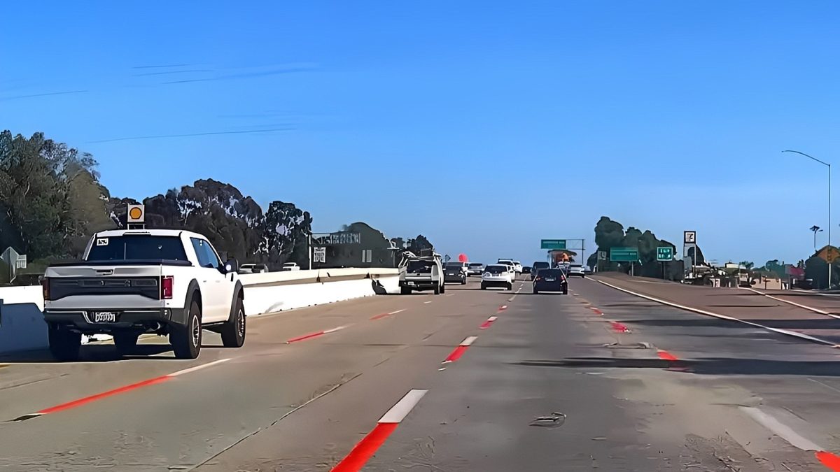 El proyecto piloto, impulsado por Caltrans (el departamento de transporte de California) y Sandag Build NCC en las inmediaciones de San Diego, sustituye la habitual monocromía de las líneas blancas o amarillas por una sucesión de trazos blancos y naranjas.