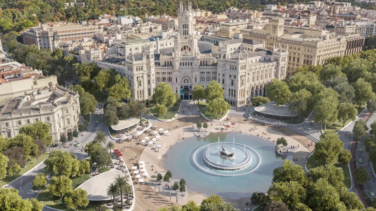 Así, por ejemplo, recrea lugares emblemáticos de las grandes capitales como la plaza de Cibeles, completamente transformada en una zona verde, con una laguna central y rodeada por una playa.