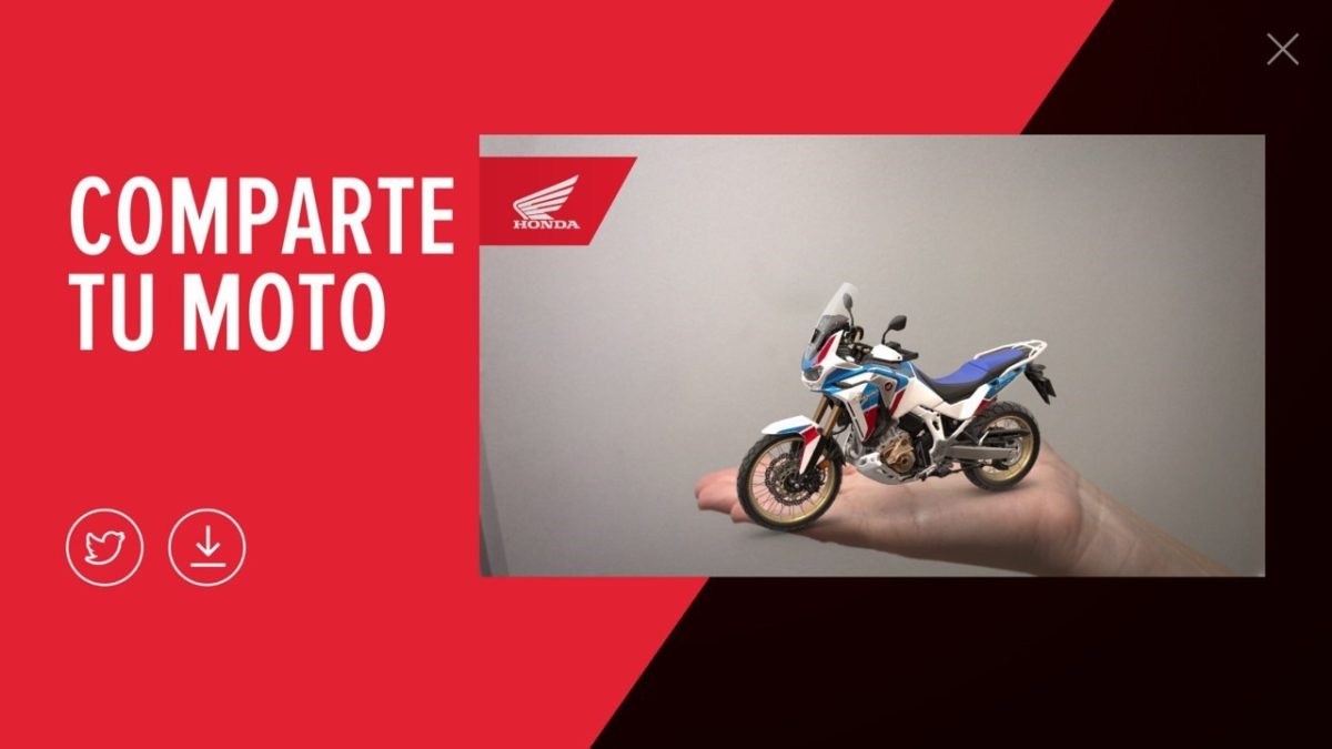 Dentro de su aplicación móvil ‘Honda Motorcycles Experience’, la firma japonesa permite configurar cualquiera de sus motos para que los potenciales clientes puedan comprobar cómo quedaría su modelo ideal. Como aportación para este periodo, ha sumado una funcionalidad por la que, gracias a la tecnología 3D, se puede colocar la moto generada desde la aplicación (disponible tanto para dispositivos iOs como Android) en cualquier lugar de la casa del usuario.