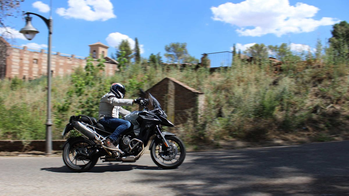 Las carreteras de circunvalación, autovías y autopistas son el coto de caza de esta Tiger 1200 GT Explorer. Desplazarse por estas vías en solitario o a dúo es una experiencia muy agradable. La protección aerodinámica es excelente, incluso en velocidades algo más altas del límite establecido. Hablando del pasajero, en sus propias palabras: “Nunca he viajado en una motocicleta tan cómoda como esta. El asiento, por ejemplo, es una auténtica maravilla”.