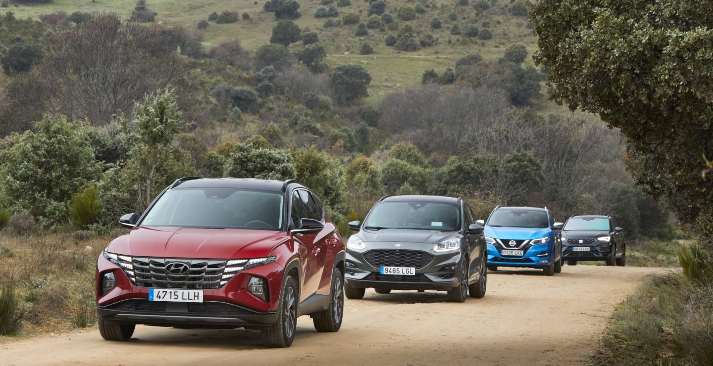 Hyundai Tucson, Seat Ateca, Ford Kuga y Nissan Qashqai: cuatro todocaminos de tamaño medio con mecánicas de gasolina.