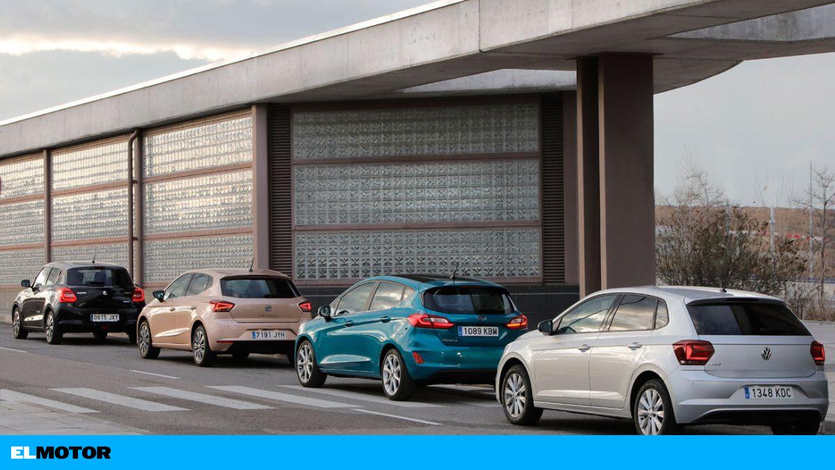 Cuatro utilitarios de gasolina: Seat Ibiza, Volkswagen Polo, Ford Fiesta y Suzuki Swift