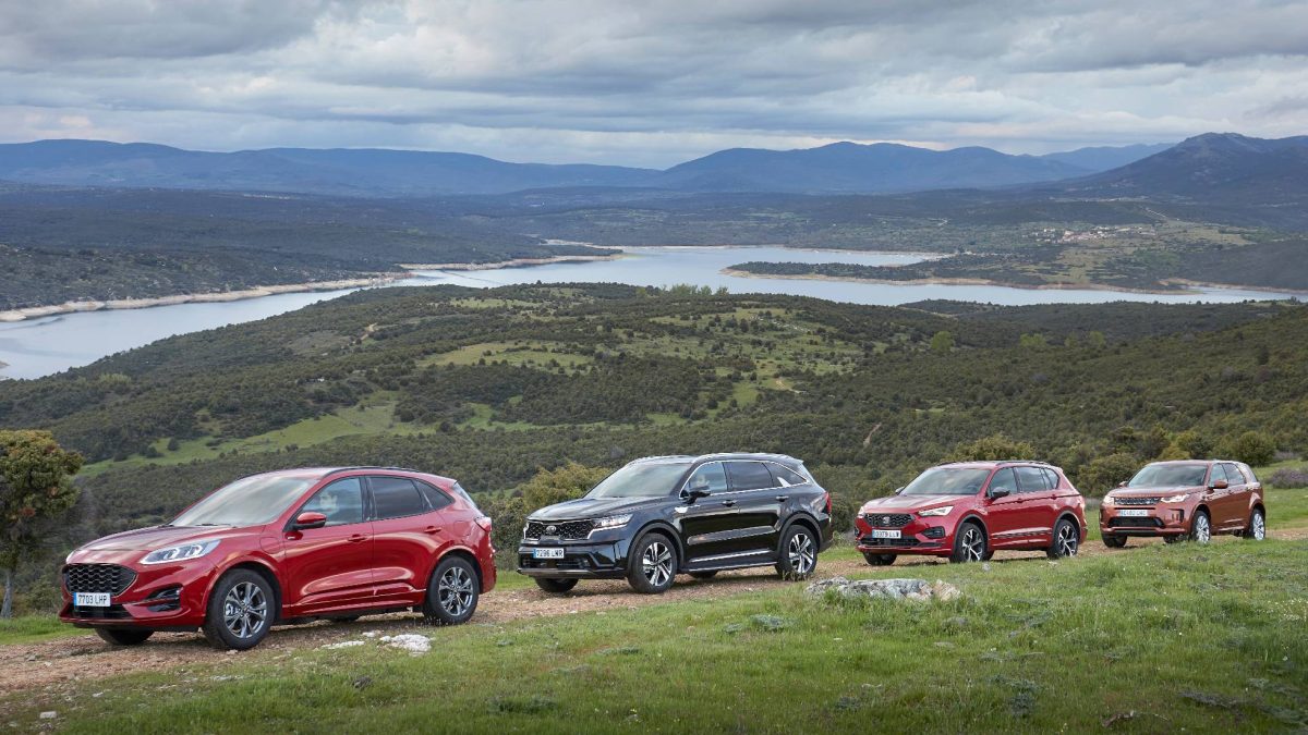 Cuatro SUV híbridos enchufables con etiqueta Cero, dos de tamaño medio, Ford Kuga y Land Rover Discovery Sport, y dos grandes, Kia Sorento y Seat Tarraco. Todos incluyen módulos híbridos que combinan dos motores, uno de gasolina y otro eléctrico, el último alimentado por unas baterías enchufables. Pero cada uno aplica recetas diferentes.