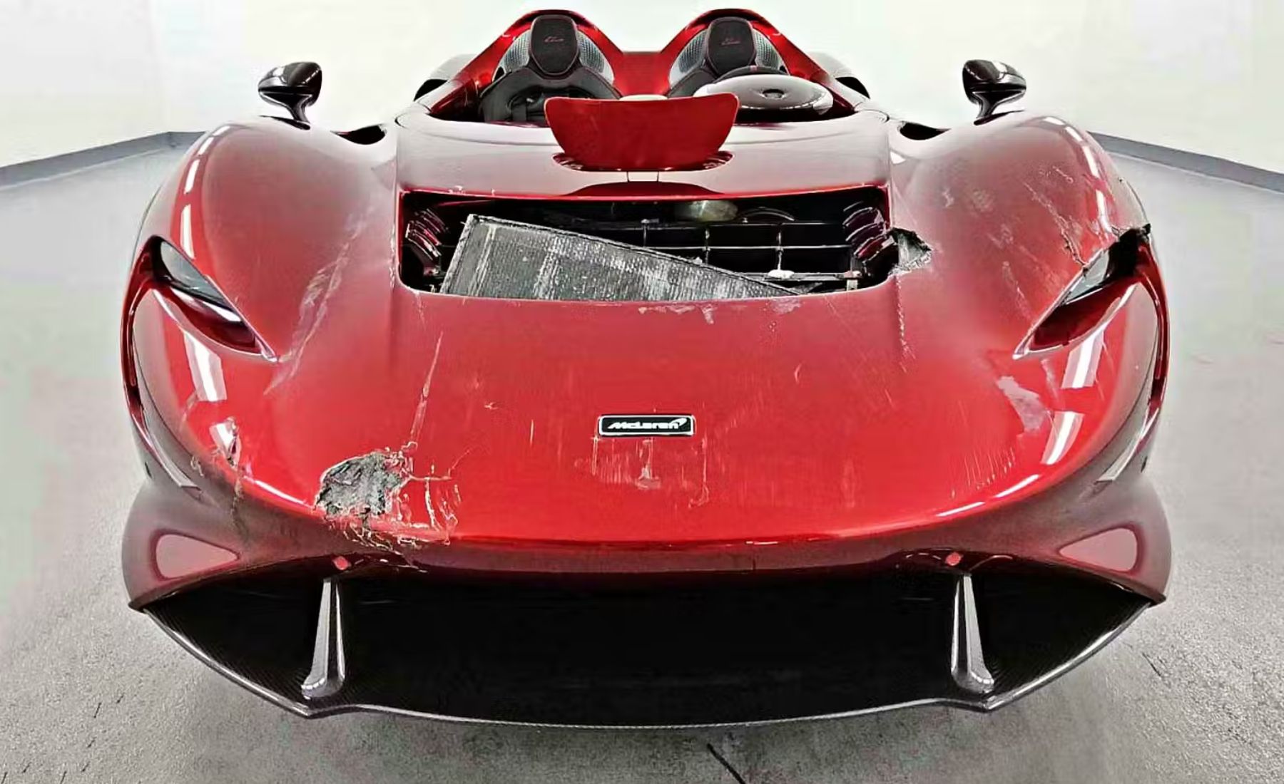 La carrocería de este superdeportivo está fabricada prácticamente en su totalidad en fibra de carbono, un material ligero y resistente, pero extremadamente caro de reparar. En muchos casos, sustituir piezas completas resulta más viable que intentar reconstruirlas.