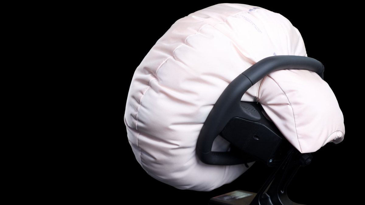 En lugar de un despliegue convencional desde el centro del volante, este se realiza desde la parte superior, lo que abre nuevas posibilidades.