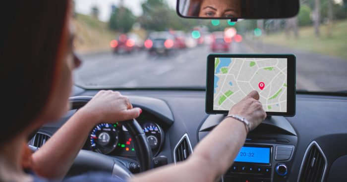 Una conductora usando Google Maps en su coche.