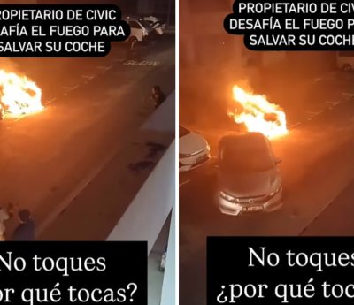 Ignoró los gritos de los bomberos que estaban presentes y quiso rescatar su vehículo del inminente peligro que suponían las llamas.