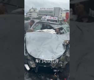 La conductora, propietaria de un Tesla Model 3, perdió el control del vehículo e impactó contra al menos nueve coches en una carretera en China.