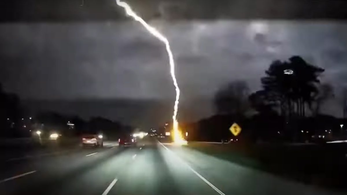 La cámara del salpicadero de un vehículo captó el momento en el que el rayo casi le alcanza mientras circulaba por una carretera de Atlanta (Estados Unidos).