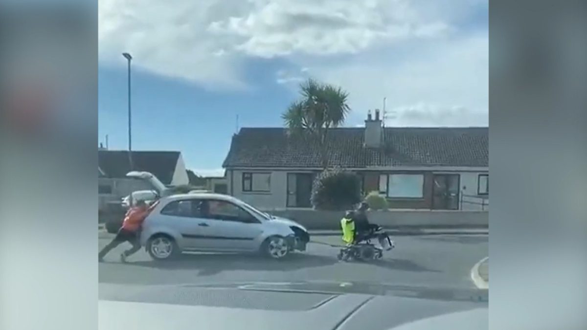 Lo nunca visto: remolcan un coche con una silla de ruedas motorizada