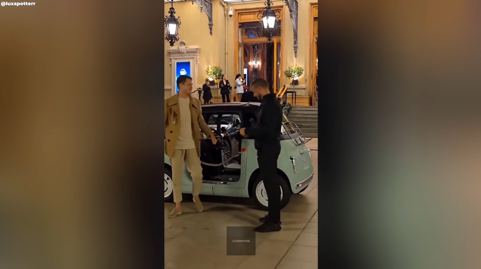 En este lugar es habitual llegar en modelos de lujo y alta gama, pero siempre hay hueco para que un pequeño Fiat Topolino haga su debut.