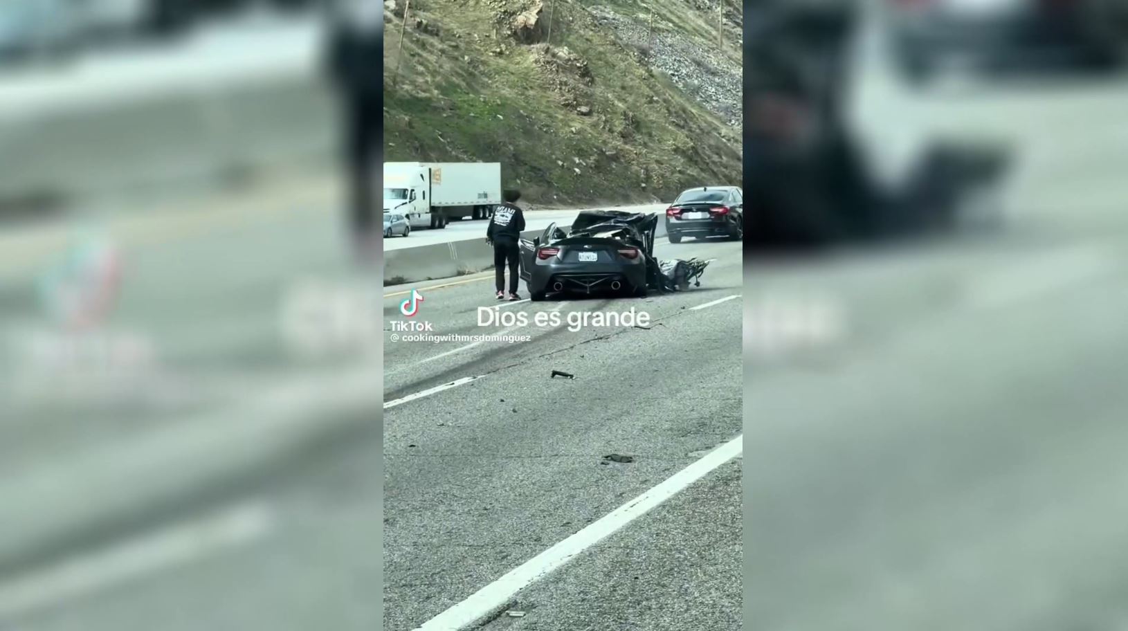 Su coche queda como un acordeón después de un accidente y sale ileso: el vídeo viral difícil de creer