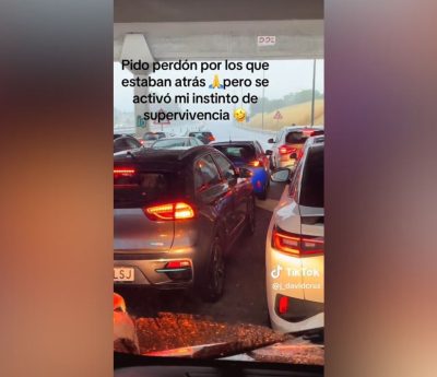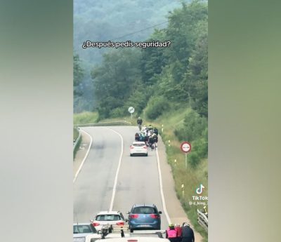 El vehículo estaba completamente cargado y, para dejar espacio, uno de los pasajeros se sentó en la parte trasera mientras el perro ocupaba su asiento.