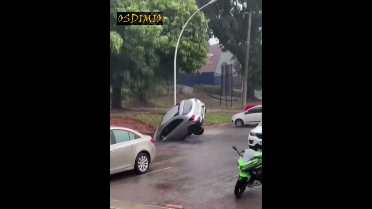 Una escena de película: un agujero en el asfalto se traga un coche por culpa de las lluvias
